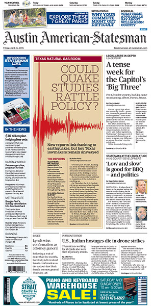 These pages represent art direction, branding and design for the Austin American-Statesman and Cox Media Group’s rebrand in 2016. As the design lead for this project, I worked with a team of designers in Cox Media Group’s four major markets for a design approach that would work for streamlined operations and was influenced by market research in all four markets (Dayton Daily News, Austin American-Statesman, Atlanta Journal-Constitution and Palm Beach Post). This project also involved training and providing brand guides to be used by designers in a hub system.